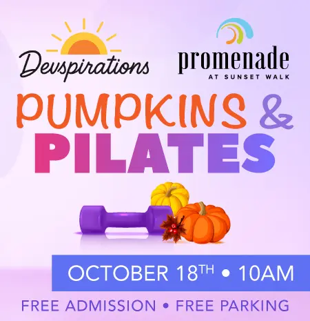 Registration begins at 9:30 AM at the Promenade North Roundabout Lawn, next to the Pumpkin Patch. Your free class begins at 10 AM.